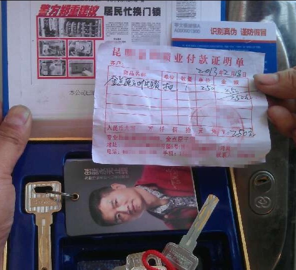250元更换金点原子超B级防盗门锁,但是怎么和其他人的不一样呢?2013年5月20号金点原子锁昆明营销服务中心0871-63333366接到住户举报,有假冒伪劣金点原子锁,顾客电话里介绍了事情的经过,原来是举报人到朋友家玩的时候,相互说起家中怕被盗,前几天280元请金点原子锁昆明服务中心0871-63333366工作人员更换了金点原子超B级防盗门锁,举报人一听,马上说起有便宜的金点原子锁,自己就250元更换过,说的过程中,两人拿出钥匙比对了一下,钥匙形状都是一样的,但是仔细看时,发现了两人钥匙颜色有差异,在仔细看,250元的金点原子锁钥匙一面字样“金点原子”一面“李文锁城”,而280元的金点原子锁钥匙一面“金点原子”一面是商标图样。举报人怕家中被盗,立刻回家请求金点原子锁昆明技术服务中心帮忙查看家中锁具真假,在举报人多次来电诉说自己的安全问题下,我服务中心联合金点原子锁厂方工作人员及工商、公安等部门进行上门查验的打假行动。厂方在查验锁具中证实昆明没有销售此类产品,锁具送交回厂,在后面几天的查处中,因数量较小,无法进行立案侦查。在此金点原子锁昆明营销技术服务中心提醒消费者,不要贪图一点便宜而受骗上当,给家中造成被盗的隐患,更换金点原子超B级防盗门锁为的是安全防盗,正规、安全、完善的服务才是最佳选择!昆明金点原子锁官网: http://www.k3333366.com
