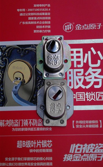 2、偷梁换柱的金点原子锁,低价宣传金点原子锁,上门更换的却不是金点原子锁,推销其他品牌产品或更换早期的一代、二代锁,扣留掉包原装正品金点原子锁的优质部件,在一般人眼里根本不懂得如何分辨优质部件和部件的重要性,导致安全度下降。