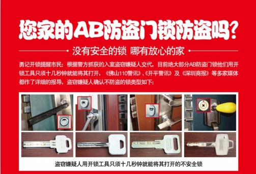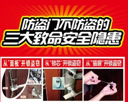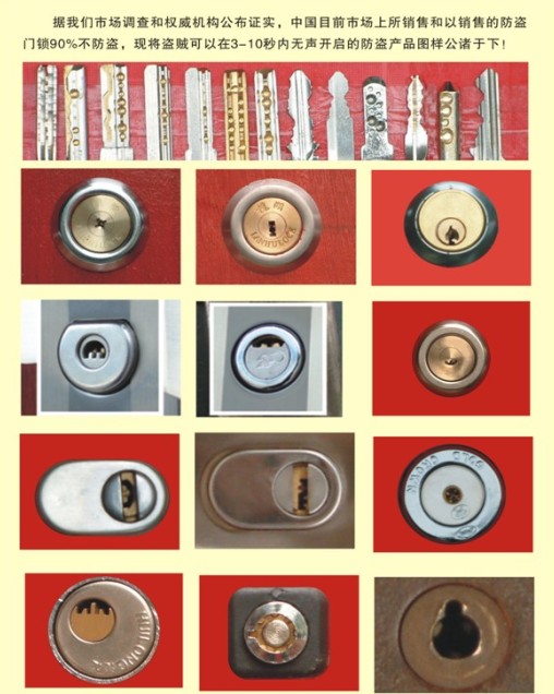近期,锁具市场出现不同品牌的“超B级叶片锁、超B级防盗锁芯”,的各种广告,吹嘘各种先进技术、防盗性能。超B级防盗锁不仅仅是看钥匙外观,更重要的是核心技术,每个部件及内部抗爆结构和选用材质都是非常关键的,所以,大家在选择更换超B级防盗锁芯的时候一定要谨慎,勿轻信表面吹嘘的什么钥匙复杂、高端技术,真正的安全、防盗是需要现场针对不同防盗门进行“防盗门三大漏洞”综合检查,选用专业综合防盗产品进行布局及养成良好、正确的使用方法才能有效防止被盗的发生。